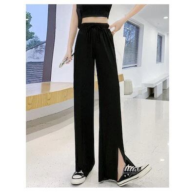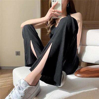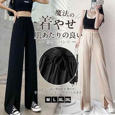 ワイドパンツ レディース ボトムス ガウチョパンツ フェミニン ゆったり ズボン 涼しい ストレート リラックス 接触冷感 スリット 着痩せ 送料無料