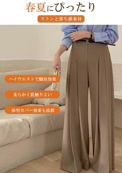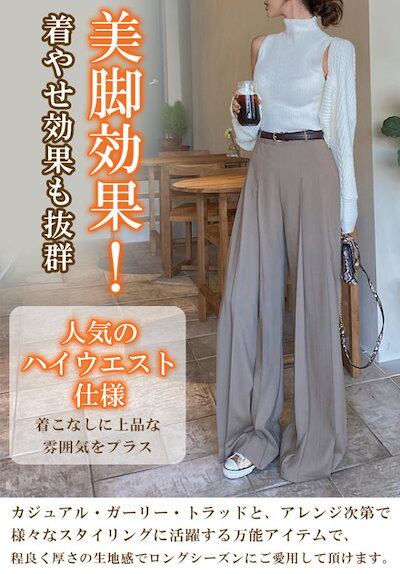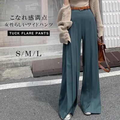 ワイドパンツ ボトムス ハイウエスト プリーツ 美脚 ガウチョパンツ ロング パンツ レディース ゆったり