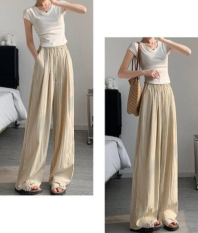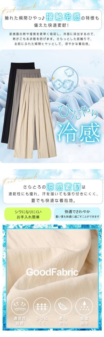 丈感選べる 「低身長高身長」 ワイドパンツ レディース 夏 涼しい 涼感 冷感 速乾 パンツ ボトムス ゆったり ガウチョパンツ タック入り タック ワイド 大きいサイズ ポケット付き