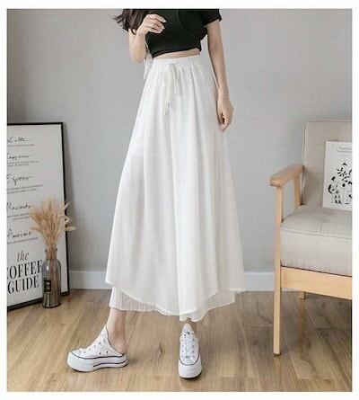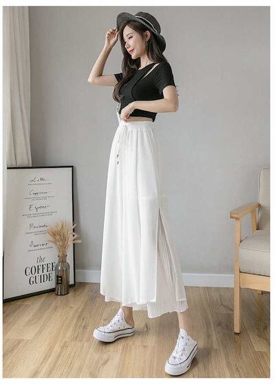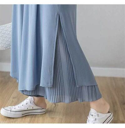 ワイドパンツ レディース ボトムス ガウチョパンツ シフォン 裾プリーツ フレアパンツ ガウチョ パンツ ボトムス スカーチョ ゆ