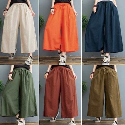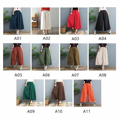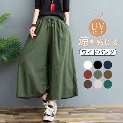 ワイドパンツ レディース ボトムス パンツ スカーチョ ワイドパンツ ガウチョ スカンツ ゆったり 綿麻 体型カバー ハイウエスト