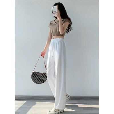 ワイドパンツ レディース ガウチョパンツ ボトムス フェミニン ゆったり 楽ちん ストレート リラックス ズボン 接触冷感 美ライン 着痩せ 送料無料