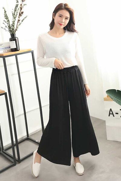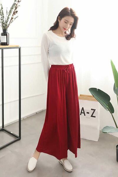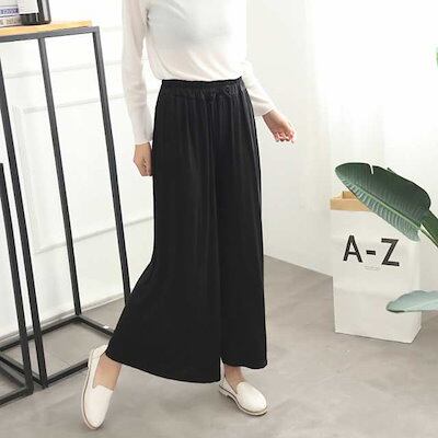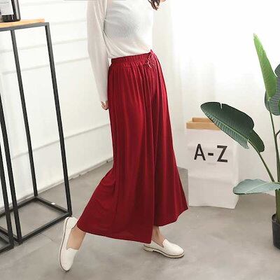 ワイドパンツ レディース 冷感 ボトムス ロングパンツ ガウチョパンツ 紐付け マキシ 七分丈 九分丈 ゆったり シンプル スカー