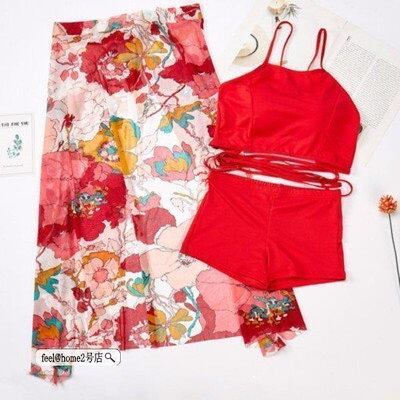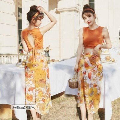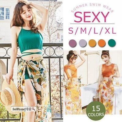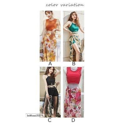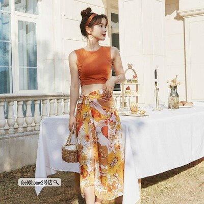 水着レディース3点セット花柄ハイウエスト韓国風可愛いスイムウェア紫外線カット水泳女性用