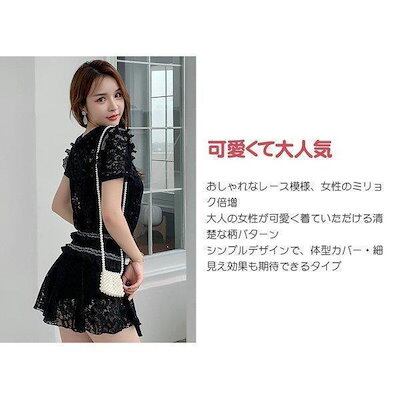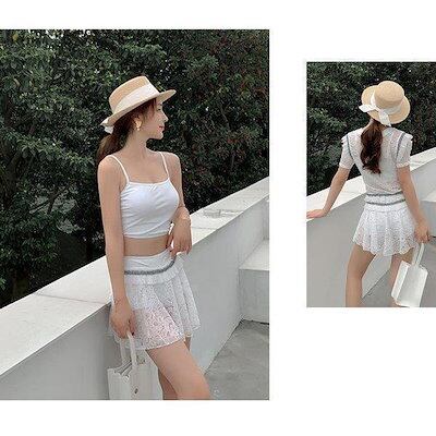 水着レディースタンキニビキニ3点セット体型カバー大人女子セパレートハイウエスト半袖レースキャミ大きいサイズシック清楚綺麗