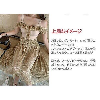 水着レディースタンキニ3点セット体型カバーオトナ女子セパレートハイウエストロングスカートヒップお腹お尻太ももカバーエレガント大きいサイズ