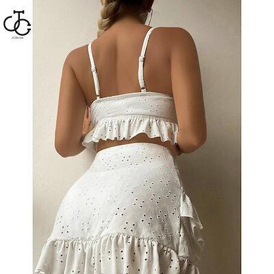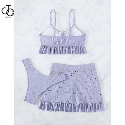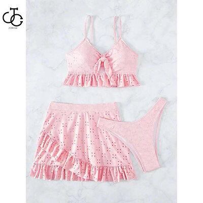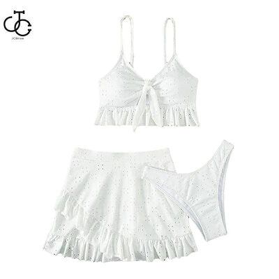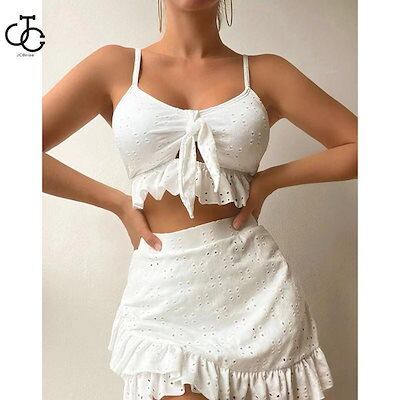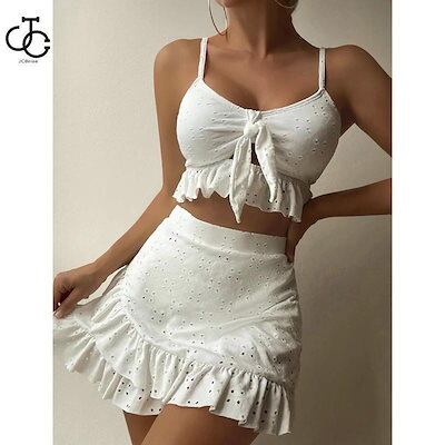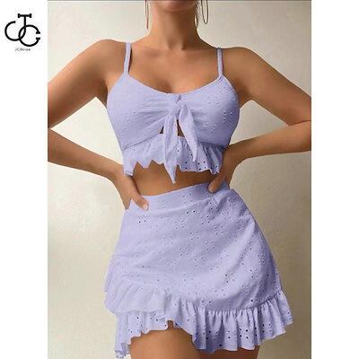 3点セット水着 レディース 韓国風水着 体型カバー フリル ブルー 可愛い オールインワン