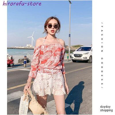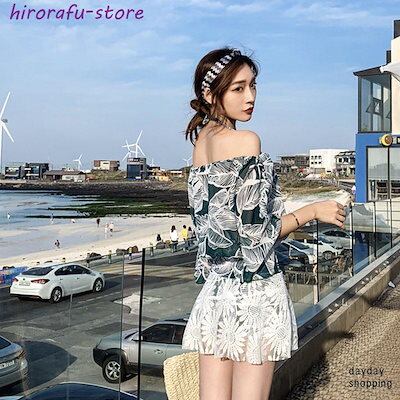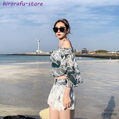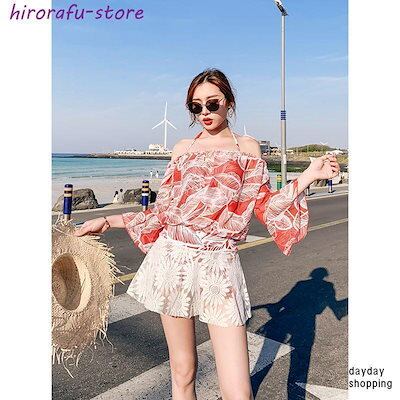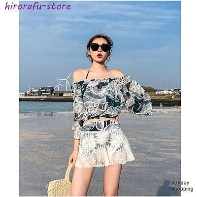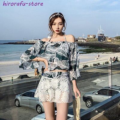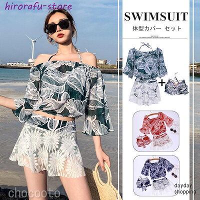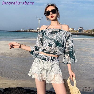 水着 レディース 体型カバー タンキニ 3点セット ハイネック バンドゥ ビキニ 花柄 パレオ スカート リゾート韓国 ファッション20代 30代