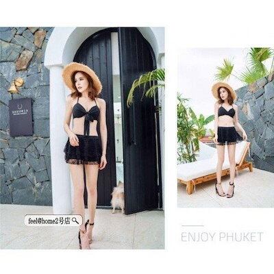 水着レディース3点セットハイウエスト韓国風レース可愛いスイムウェア紫外線カット水泳女性用