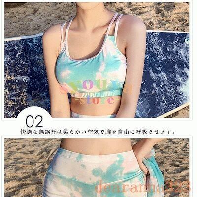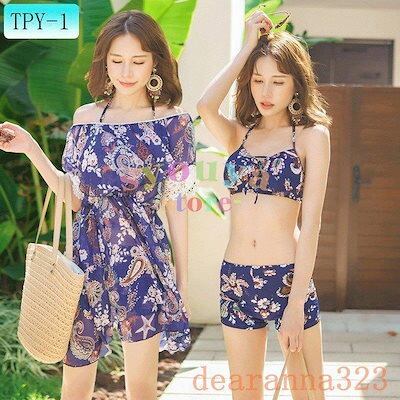 水着レディース体型カバー3点セット2wayオフショルダートップスぽっちゃりバックフリル20代30代40代可愛い水着