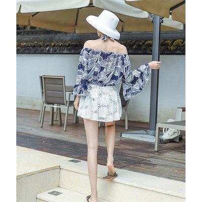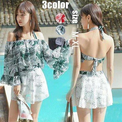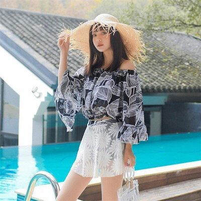 ママ水着体型カバー水着オフショルダーレディースビキニ3点セットオトナ女子ショートパンツショーパン水着の上に着る服