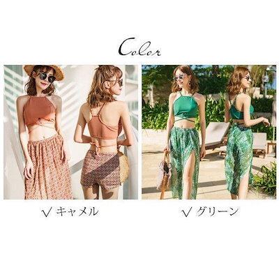 水着 レディース ビキニ 3点セット 体型カバー 上品 水着セット 無地 セパレート 着痩せ おしゃれ 大人 パッド付き タンキニ 温泉 大きいサイズ ママ水着