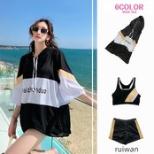 激安水着新品3点セット水着 レディース 体型カバー 露出控え 中学生 高校生 大学生 韓国 水着セット フィットネス 水着 スポーティー 3点セット セパレート タンキニ タンク ショートパンツ かわ