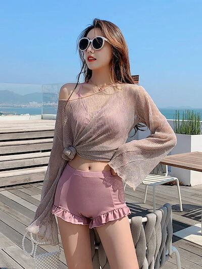 水着 韓国ファッションの水着 2025新作 水着 水着女性用3点セットセクシー腹部隠しで痩せ見え夏の高級感温泉水着 体型力バー レディースorange