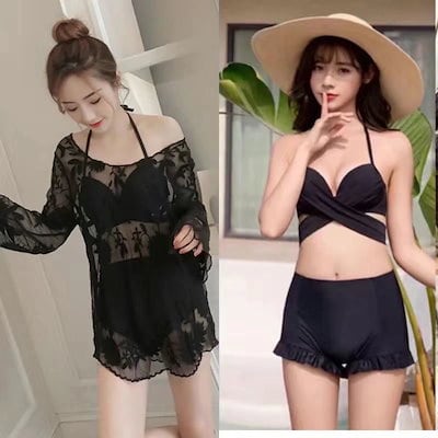 水着 韓国ファッションの水着 サマー 海辺 休暇 セクシー レディース ブラック ホワイト 2色 温泉 ビキニ 3点セット ギャザー レース ゆったり 日焼け止め水着