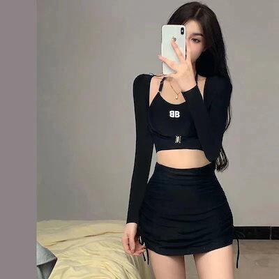 水着 韓国ファッションの水着 レディース 分体 スリム 着痩せ セクシー ファッション 水着 3点セット 保守的 高級感 ブラック 長袖 運動 学生 スイムウェア