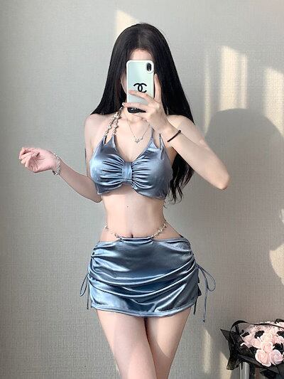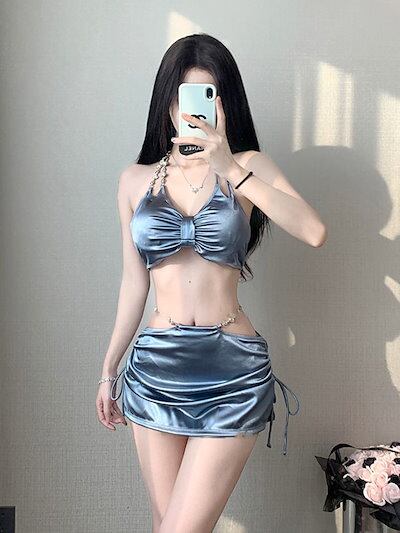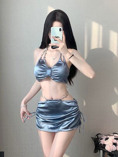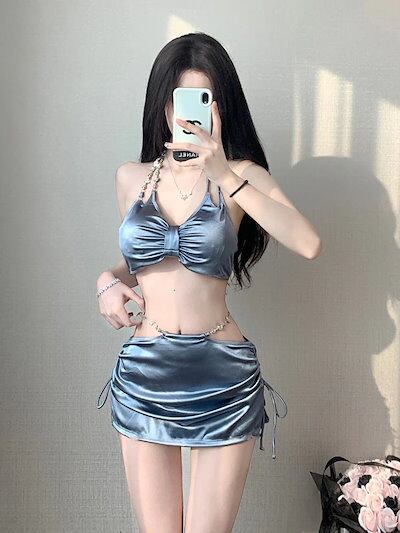 水着 韓国ファッションの水着 休暇 写真を撮り レディース 分体 ファッション ビキニ 3点セット 純欲風 首をかける セクシー 小さな胸 ギャザー 温泉 スイムウェア