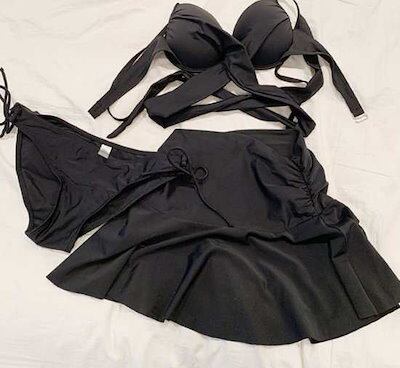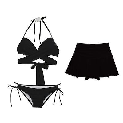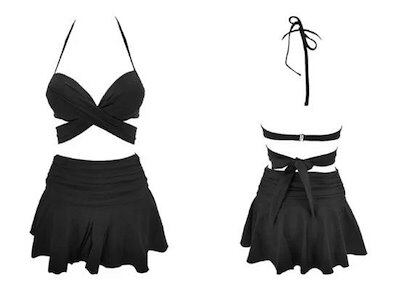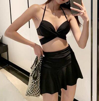 ビキニ レディース 水着 3点セット スカート付き ホルターネック スイムウェア ビーチウェア クロスデザイン バックリボン カジュアル
