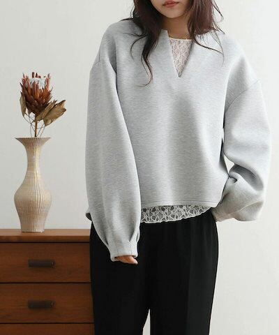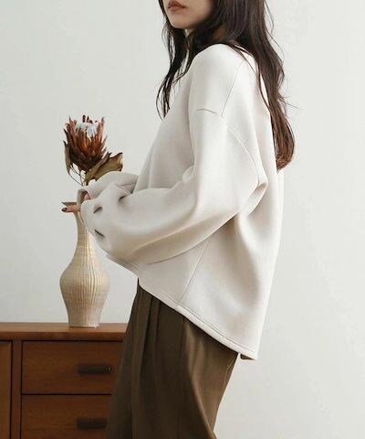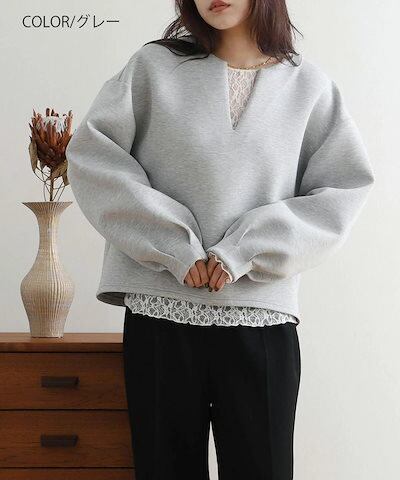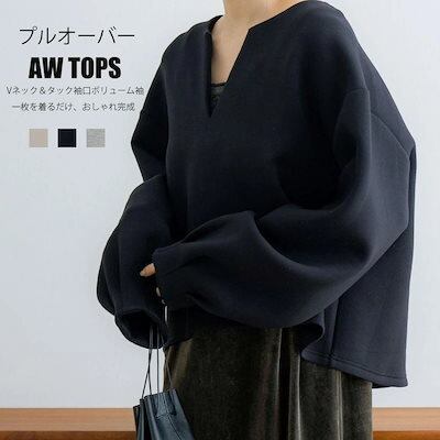 プルオーバー パーカー レディース バルーン袖 長袖 秋冬 トップス スウェット スキッパーカラー ゆったり 大きいサイズ ボリューム袖 ラウンドヘム ペプラム ドロップショルダー レイヤード 重ね着