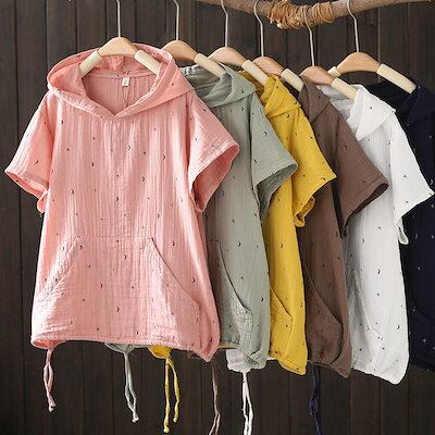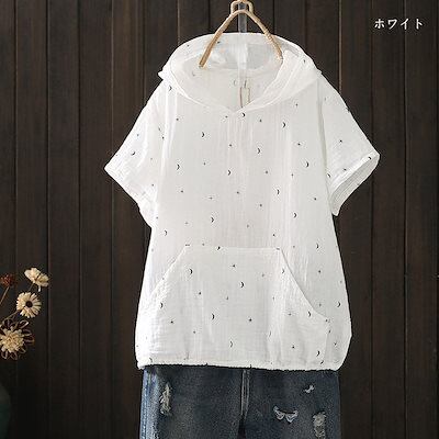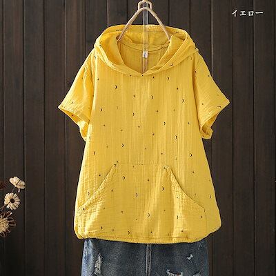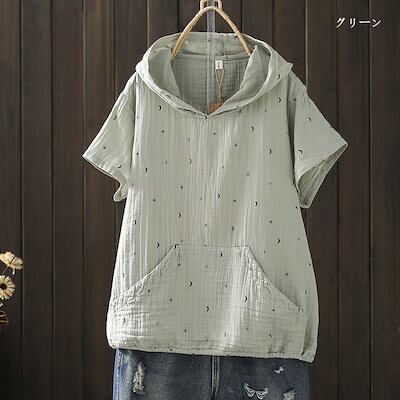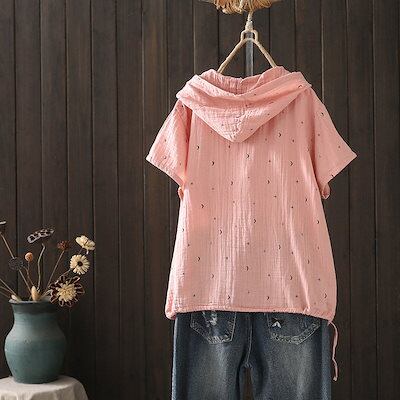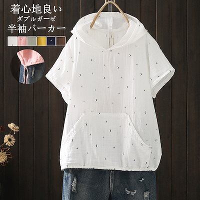 半袖 パーカー レディース フード付き シャツ ブラウス 綿100% トップス 春夏 tシャツ プルオーバー 大きいサイズ 半袖パーカー シャツブラウス ガーゼシャツ ガーゼブラウス カジュアル き