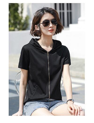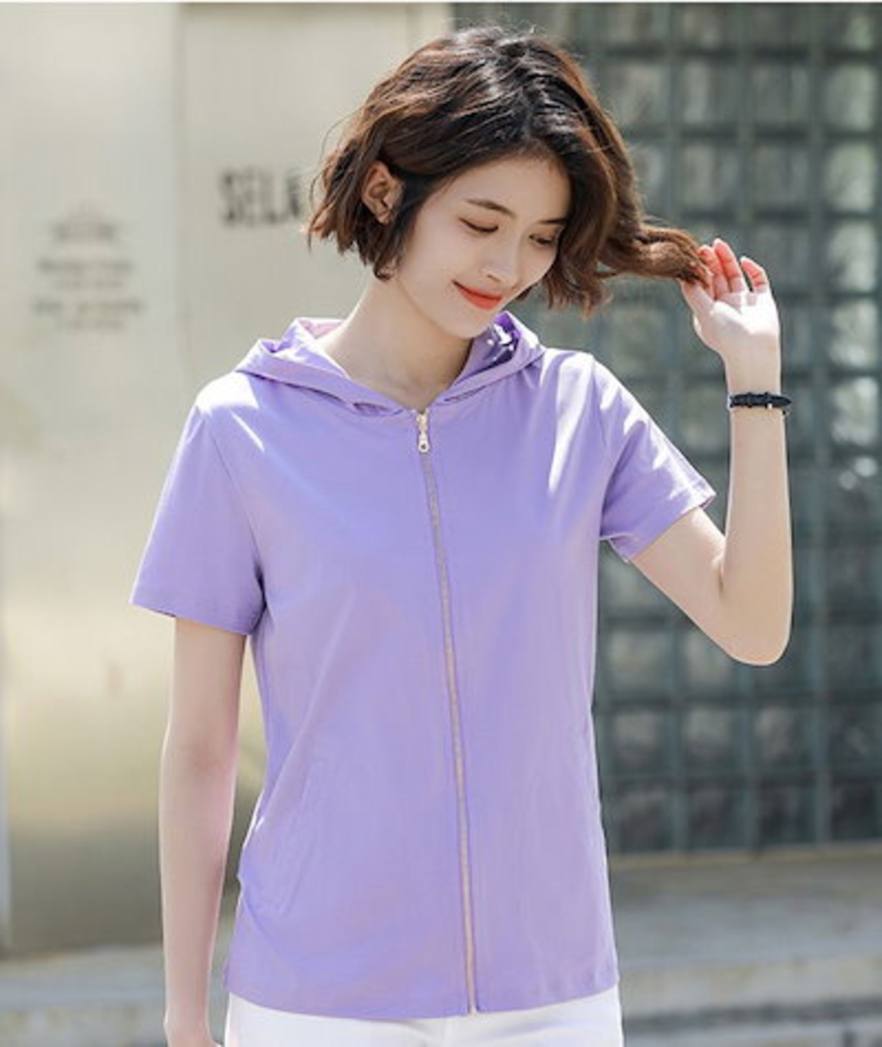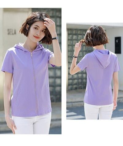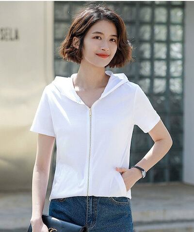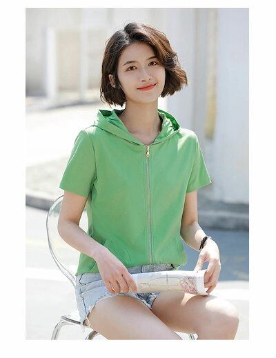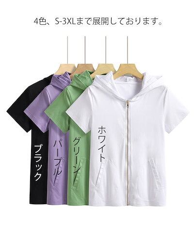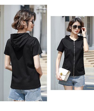 半袖 パーカー ジップアップ レディース 春夏 トップス ライトアウター 羽織り 半袖パーカー 前 開き 薄手 ジップ フルジップ フード付き ポケット 綿 コットン カーディガン レイヤード フーデ