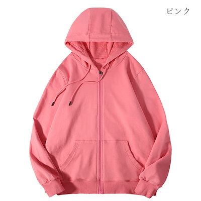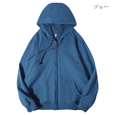 パーカー レディース 秋 薄手 ジップアップパーカー 長袖 トップス アウター ジップアップ フード ジップパーカー 綿 羽織 トレーナー スウェット スエット ファスナー リブ 無地 大きいサイズ