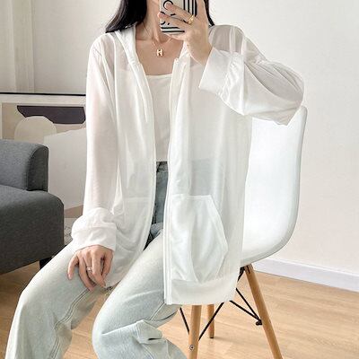 UVカット パーカー ロング レディース 薄手 UVパーカー ロングパーカー 春 夏 トップス 長袖 シアー 紫外線対策 パーカー 大きいサイズ アウター フード 夏用 カーディガン フード付きパーカ