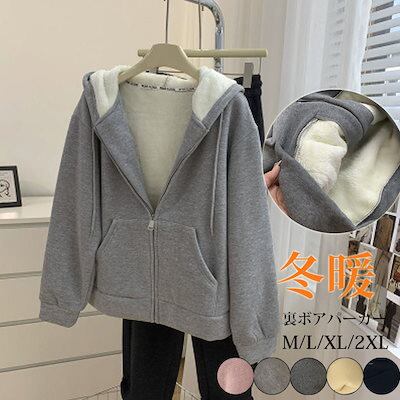 裏起毛 パーカー レディース 冬 アウター スウェット カーディガン 長袖 ジップパーカー ボア フード付き 大きいサイズ ジップ 裏起毛パーカー あったか 暖かい ライトアウター ショート きれいめ