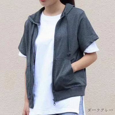 パーカー 薄手 半袖 ジップパーカー レディース 春夏 半袖パーカー 前開き 大きいサイズ ジップアップ トップス アウター ショート アウター 羽織もの 冷房対策 薄手アウター おしゃれ きれいめ