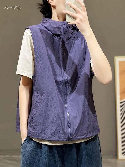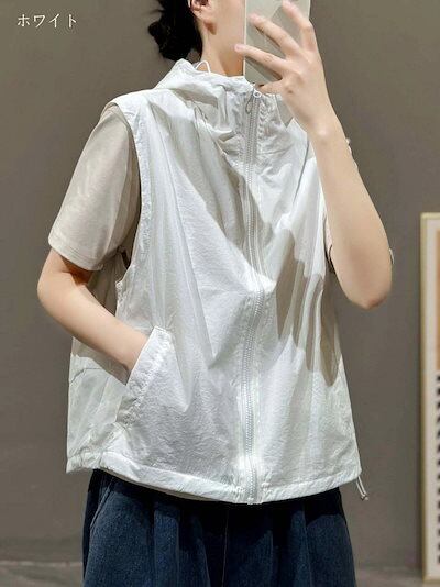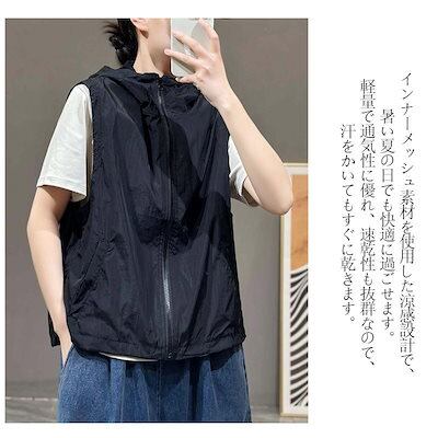 ベスト レディース 夏 前開き uvカット パーカー 薄手 涼しい スポーツベスト 春夏 メッシュベスト 熱中対策 涼感 アウトドアベスト ファスナー 裏メッシュ フード付き スポーツ アウトドア レ