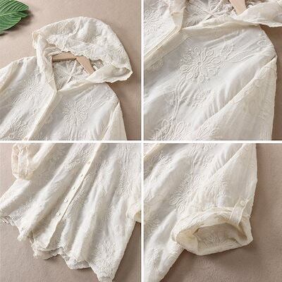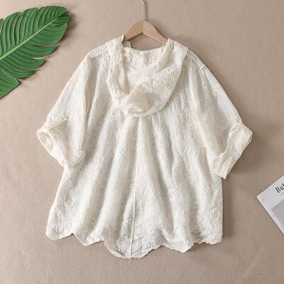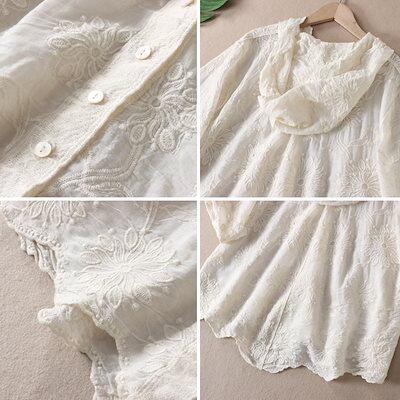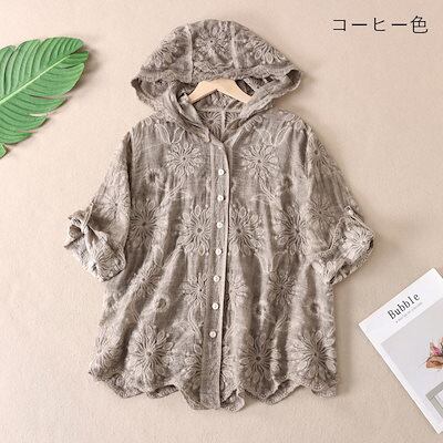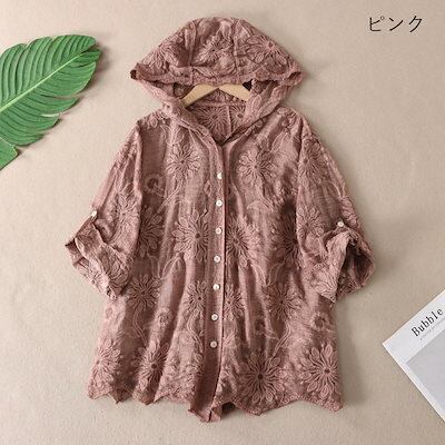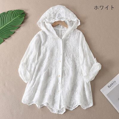 パーカー 薄手 夏 綿100% uvカット カーディガン 7分袖 夏用 UV 長袖 ボタンパーカー レディース トップス 羽織りもの レースカーデ 刺繍 uvパーカー おしゃれ 前開き 大きいサイズ
