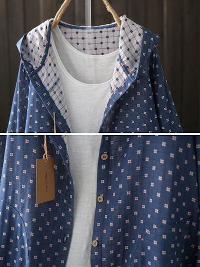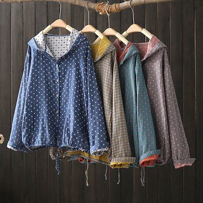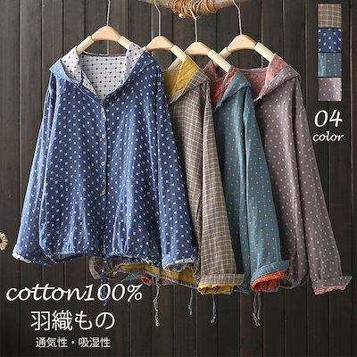 パーカー 綿 ダブルガーゼ カーディガン 薄手 春 夏 羽織もの レディース トップス 長袖 前開き アウター パーカー 柄 ボタン ボタンパーカー フード ジャケット 冷房対策 紫外線対策 UV