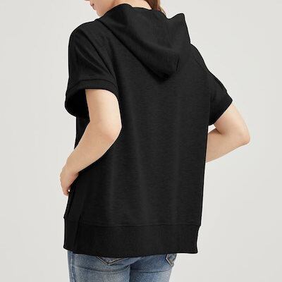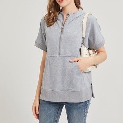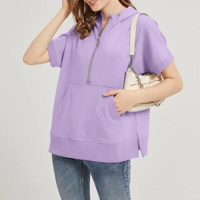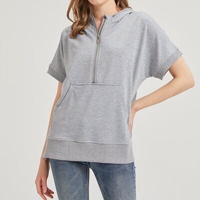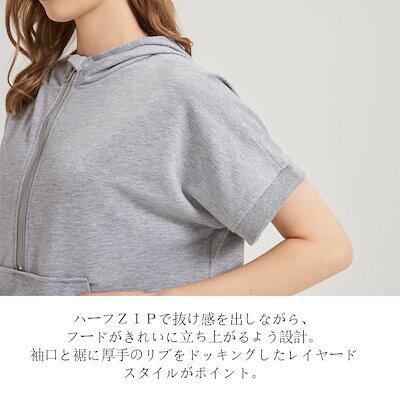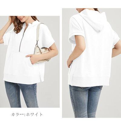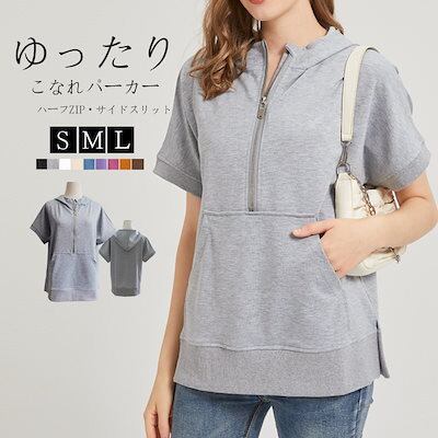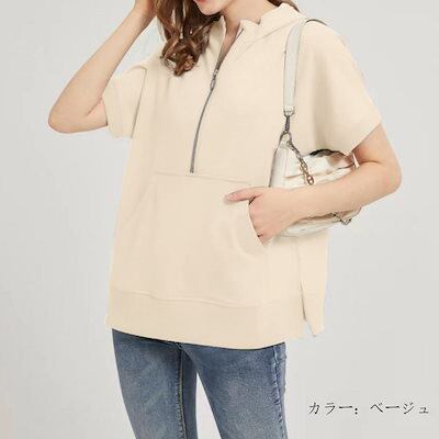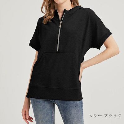 パーカー 半袖 夏 半袖パーカー レディース ハーフ ジップ おしゃれ プルオーバーパーカー 半そで サマー 夏用 トップス ジップパーカー 春夏 大きいサイズ リブ付き フードパーカー プルオーバー