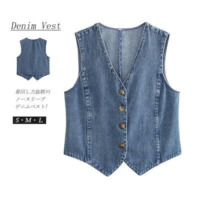ベスト アウター デニム レディース デニムベスト 夏 ライトアウター コーデ 羽織 ジャケット デニムジャケット トップス ノースリーブ 上着 ジレ レデュイースジレ レイヤード 羽織り 無地 ボタ