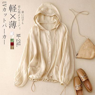 uvカット パーカー 夏 薄手 アウター カーディガン フード付き レディース ラッシュガード 長袖 カーディガン 夏用 ドローコード ゴム入り ポケット付き ボタン リボン 前開き 無地 トップス