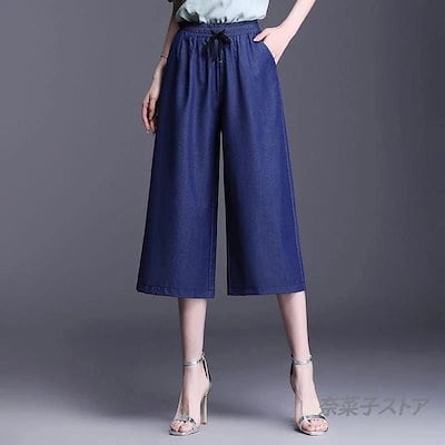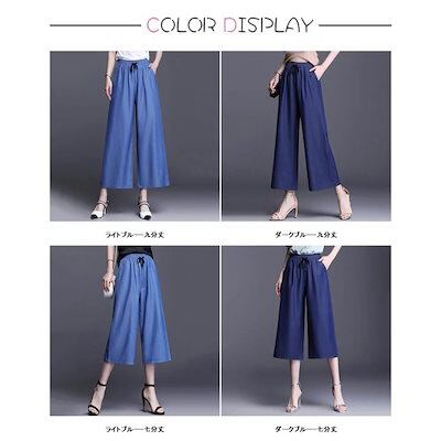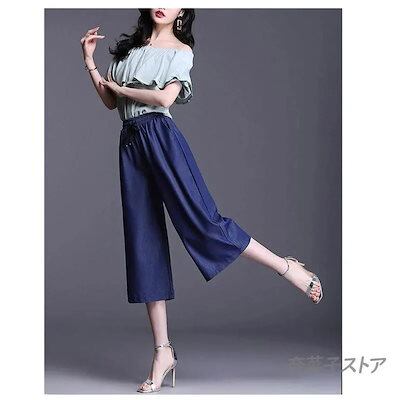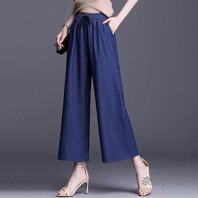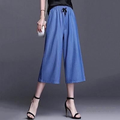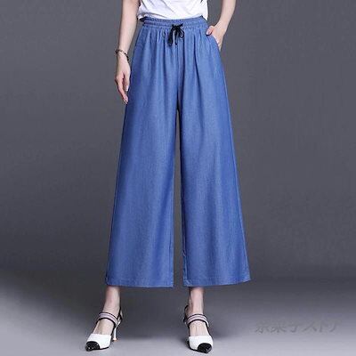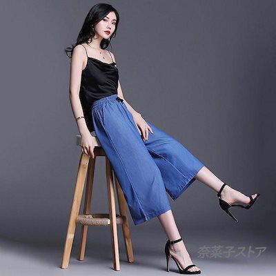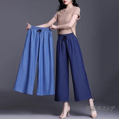 テンセル接触冷感ガウチョパンツ夏ストレートデニムワイドパンツレディース七分丈九分丈春夏大きいサイズ着痩せ
