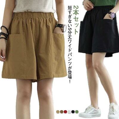 ショーツ ショートパンツ ウェストゴム 綿 ハーフパンツ ワイドパンツ 短パン 5分丈パンツ ハイウエスト 夏短パン 2本セット レディース ワイド おしゃれ 部屋着 パンツ 夏ズボン ルー