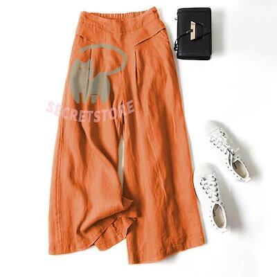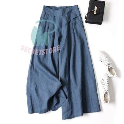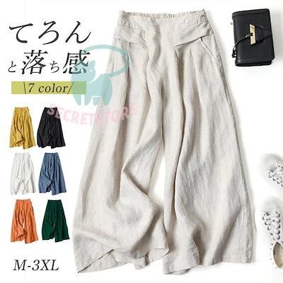 【3日出荷】新品(タイム)ワイドパンツ ガウチョパンツ スカーチョ ガウチョ ボ スカンツ レディース 九分丈 綿麻 無地 ハイウエスト 春 夏 体型カバー 大きサイズ
