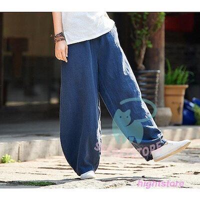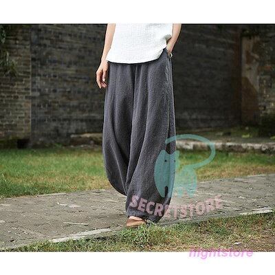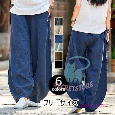 【3日出荷】新品(タイム)パンツ レディース 春夏 ボ 綿麻 ワイドパンツ ロングパンツ ガウチョパンツ 韓国風 おしゃれ 30代 40代 50代 ハイウエスト ゆったり 楽ちん