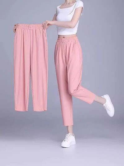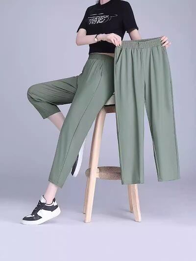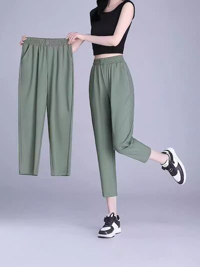 アイスシルク ハーレムパンツ夏 薄手 通勤 カジュアル 気質 ハイウエスト スーツワイドパンツ ハイウエストひんやりボトムス