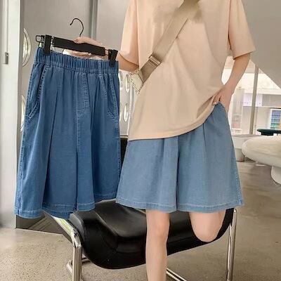 脚見せショートパンツハーフパンツレディース夏ハイウエストゆったり着痩せワイドパンツハーフパンツ大きめサイズアイスシルクハーフパンツひんやりボトムス