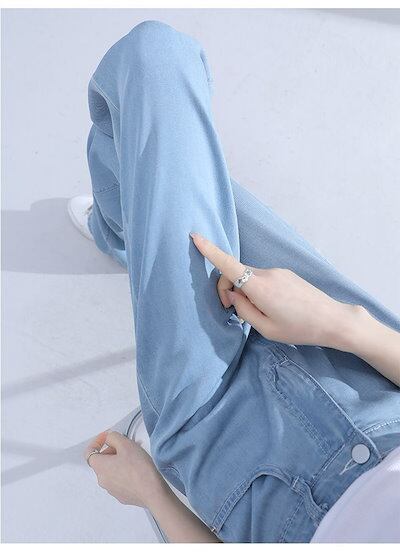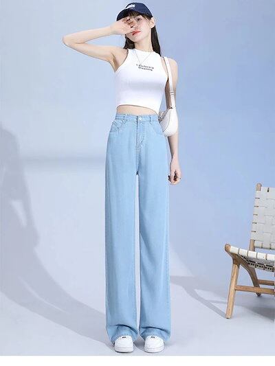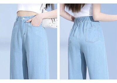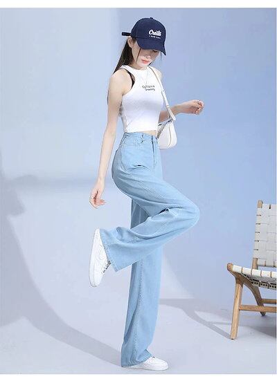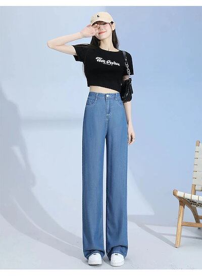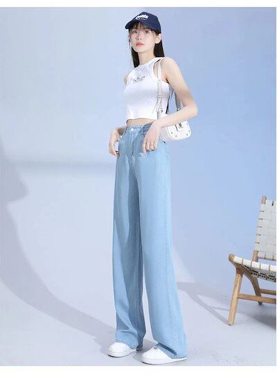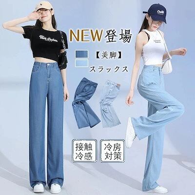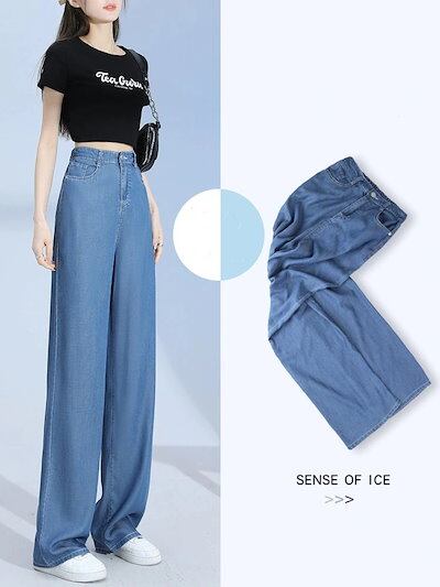 日韓2025新作 涼感ワイドパンツ 調 涼しい 夏用 ゆったり 薄手 接触冷感 ロング クール ストレッチ 体型カバー ウエストゴム ボトムス 着痩せ 美脚ジーンズひんやりボトムス