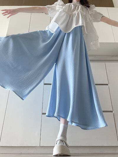 2025夏新作 キュロットパンツ日系薄手アイスシルク接触冷感 uvカットカジュアルゆったり怠惰な風ハイウエストスリム見えワイドパンツ