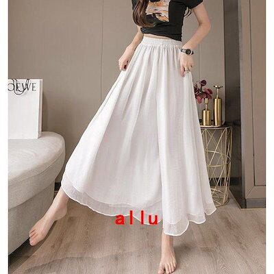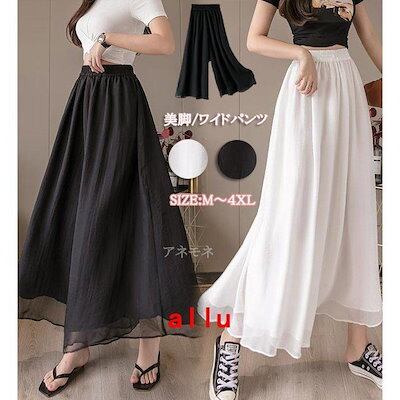 [9月販売促進新品]ワイドパンツ 美脚 涼しい ボトムス ウエストゴム ロングパンツ レディース 九分丈スカート ゆったり チノパン 春 夏 4XL 対応大ヒット
