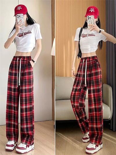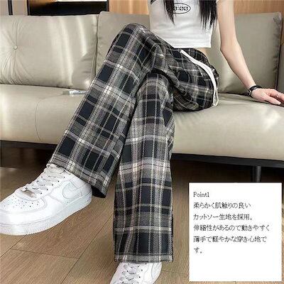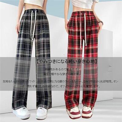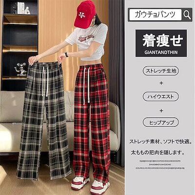 [9月販売促進新品]ガウチョパンツ レディース ワイドパンツ チェック柄 ウエストゴム 太め ゆったり ハイウエスト ストレッチ コンパクト トラベル 婦人 軽量 薄手 春夏大ヒット