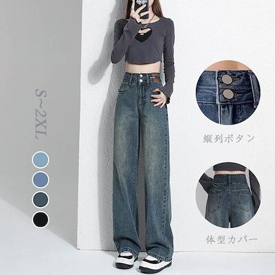 【2025夏新作】 ハイウエストデニム デニムパンツ レディース ゆったり 脚長パンツ 微弾ワイドジーンズ ジーパンレディース 韓国ファッション 夏 体型カバー 着痩せ ボトムス