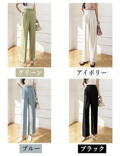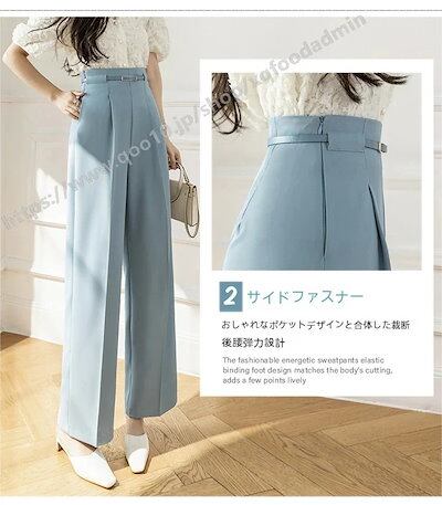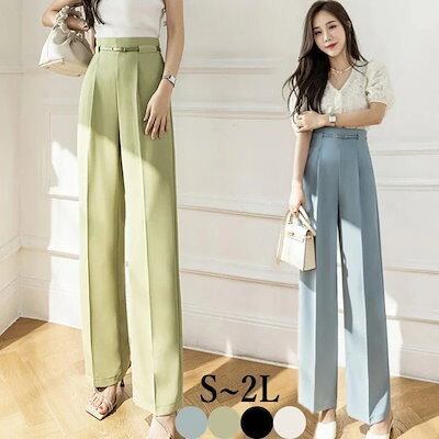 【急速出荷!】センタープレス ワイドパンツ テーパードパンツ タックパンツ ストレート レディース ベルト オフィスパンツ 大人カジュアル きれいめ ボトムス フォーマル S M L 2L