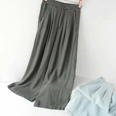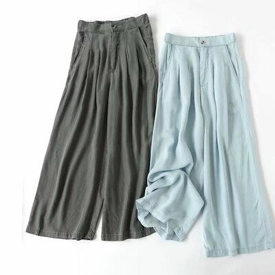 メガ割 雑誌やSNSで話題 早い者勝ち ドレープ シルキー 通気性 クール テンセル デニム ワイドレッグ キュロット シン デザインセンス ロングパンツ シンプル ジェントルスタイル福