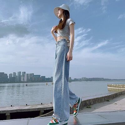 ひんやりボトムス 脚長効果!スキニーパンツ デニムボトムス スキニーパンツ ワイドパンツ 韓国ファッション デニムパンツ スラックスパンツ ウエストゴムパンツ フレアパンツ ダメージジーンズ ハイウエ