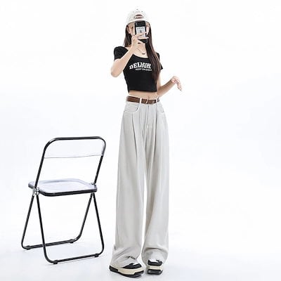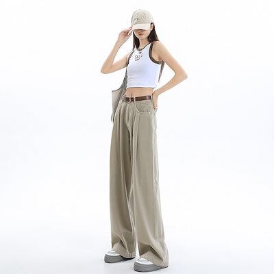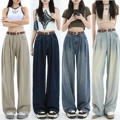 【3日以内出荷】脚長効果!デニムパンツ ワイドパンツ レディース ハイウエスト お腹 薄手 ドレープ ゆったり 多用途 韓国ファッション